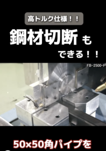 長尺加工機高トルク仕様では角パイプなどの鋼材のカットも可能です。アルミ材だけでな