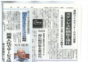 薄板コイルセンター (CC)の中川産業 (本社・東大阪市箕輪、社長・白木昇道氏)